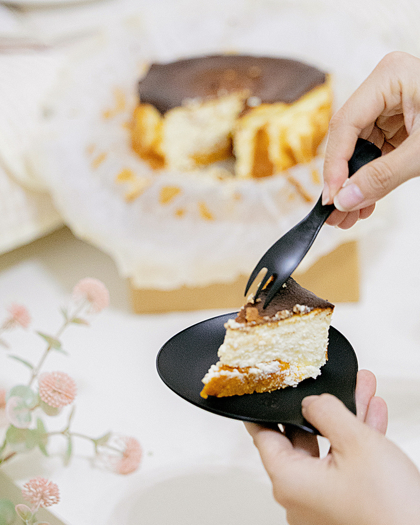這一份金山紅肉地瓜巴斯克捧起來沉甸甸的,外型又與淡水夕陽連結,我覺得送禮能夠送得很體面呢! 重點是地瓜泥的部分有狙擊到長輩喜好,原本不喜歡乳酪也不愛甜點的我媽,竟然一口接一口!