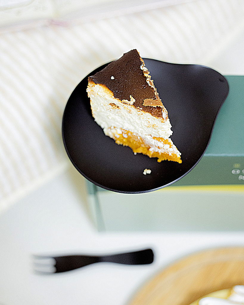 我們不用遠赴淡水也能欣賞到淡水的夕陽囉! 這款以淡水夕陽為靈感的日暮金波,融合西班牙巴斯克乳酪蛋糕與金山地瓜泥,一打開盒子就有一股焦糖的撲鼻香息來! 它上層是起司香氣清爽的濕潤半熟蛋糕體,下面搭配厚厚一層甜而不膩的金山地瓜泥,香氣層次豐富,鼻腔裡超有戲!