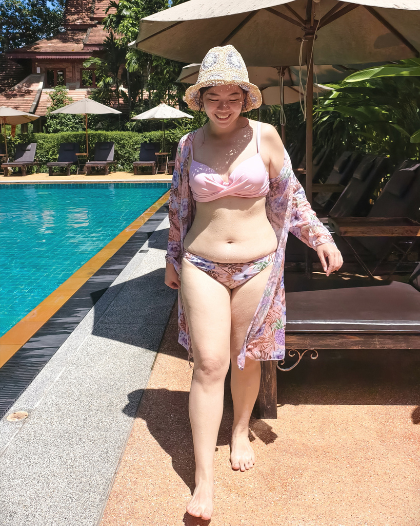 這套 OB Cloud 的三件式泳衣真的是棉花糖女孩的度假穿搭救星!不只外型甜美,更貼心地兼顧了安心感與修飾效果