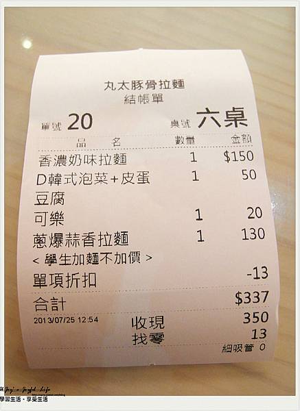 我覺得丸太拉麵的價位實在親民(特別是對學生族群來說