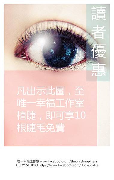 凡去唯一幸福工作室植睫,只要出示此圖就可以送十根睫毛喔!!