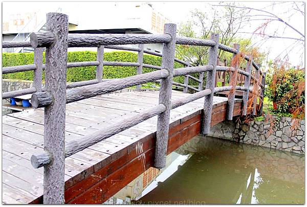 在這個花卉園區中,設計搭造了傳統古井、拱橋、水車及蓮花池