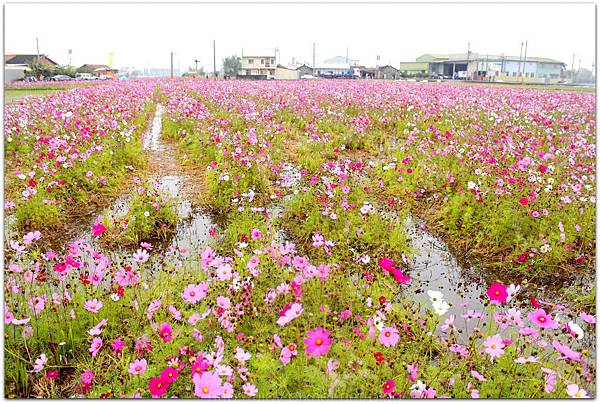 經過一片稻田後,在花卉園區旁還有一大片的波絲菊花海在等著你的欣賞!