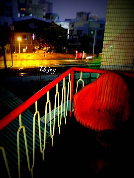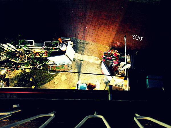 也許小露台在太陽下會更鮮豔美麗,但在夜晚受限的影子與燈光下,也有自己的美麗。