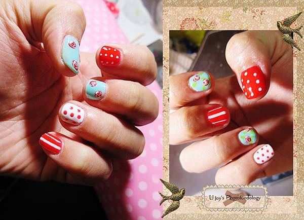 哈哈看看我為這野餐多精心阿!連指甲都想要符合這少女主題!!!