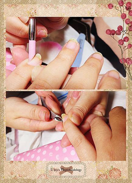 一開始花花很仔細的先幫我清潔指甲表面還有修整邊緣