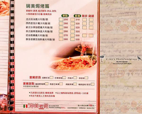 在這裡,你可以看見義式料理的焗烤、義大利麵、燉飯等菜色