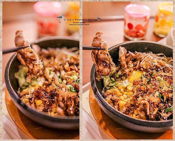 拍攝石鍋拌飯時可以看到柴魚片們因為溫度、因為濕度而在跳著舞