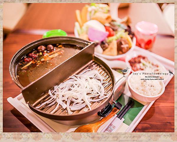 而火鍋上桌時烤盤的部分便有洋蔥絲已蓄勢待發