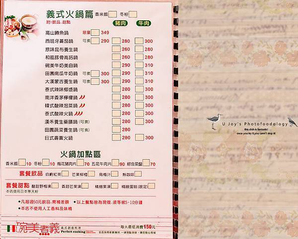 另外你也可以加價套餐曾320元上下多擁有一杯飲料和飯後甜點