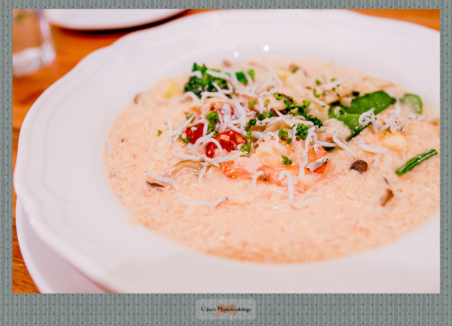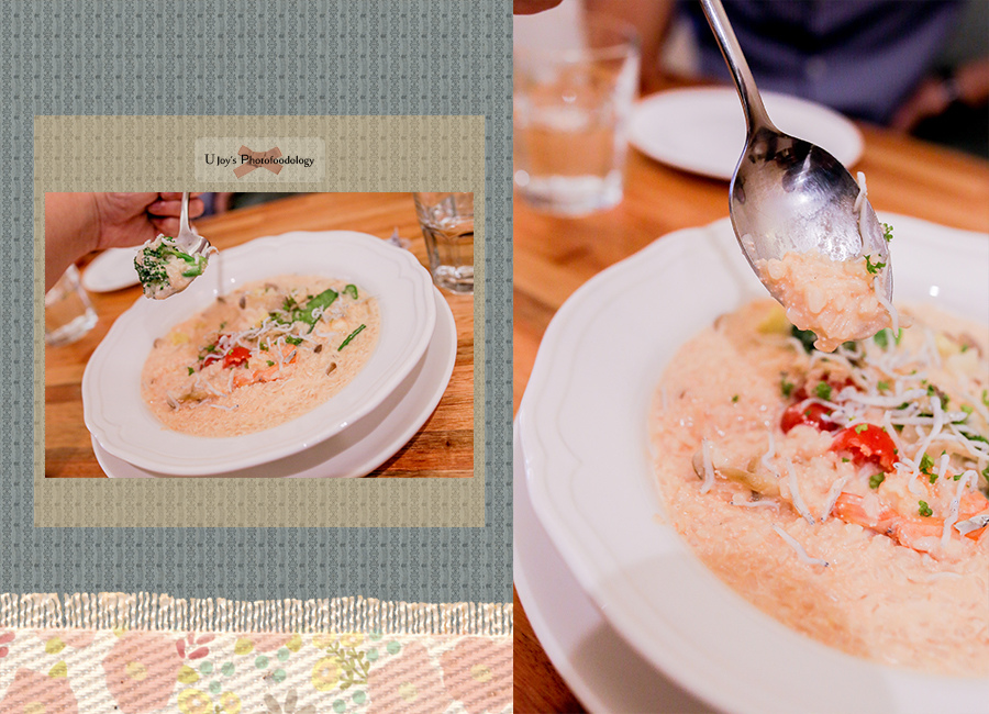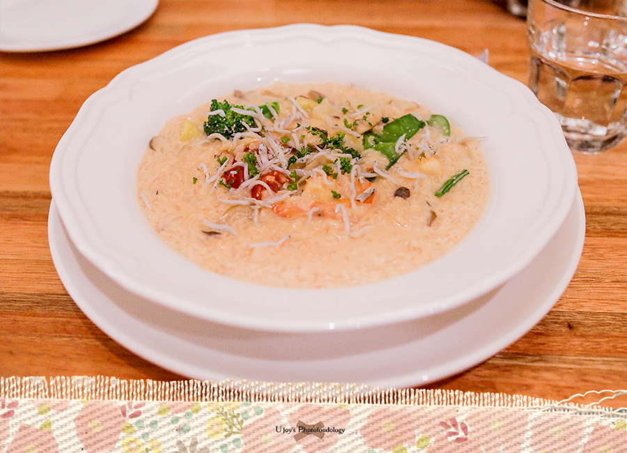 俯瞰這份燉飯,可以輕易察覺到他擁有很多蔬菜元素在這份餐點裡頭