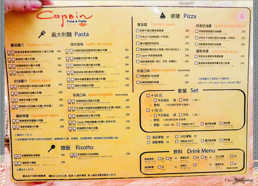 Copain Italian Fine Food 義式廚房的料理主要分成義大利麵、燉飯和pizza三種種類!