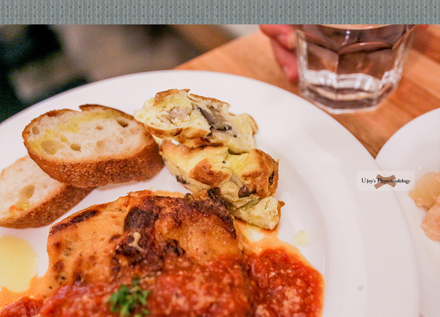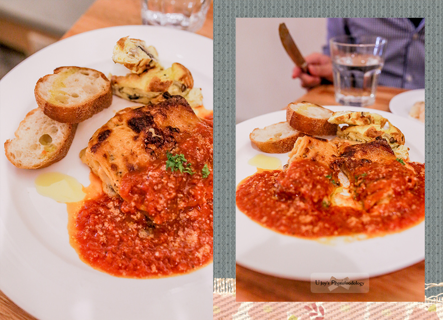 所以他稍微縮減了千層麵的份量而讓法國麵包及烘蛋去補足那剩於部分的空虛