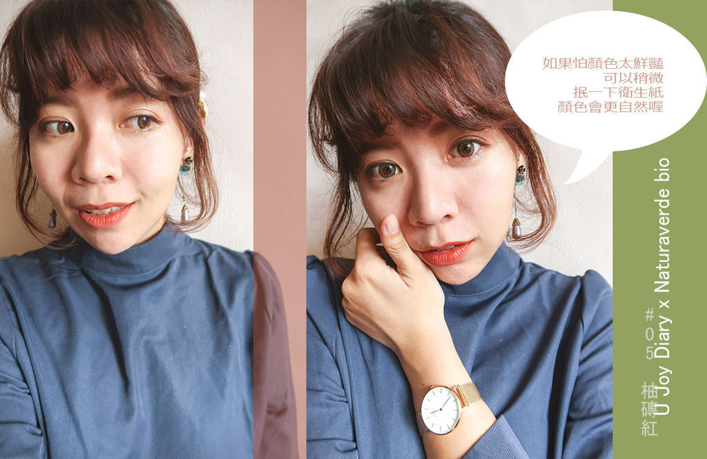 但是不用覺得大紅唇很有距離感!這支柚磚紅的紅色稍為偏橘