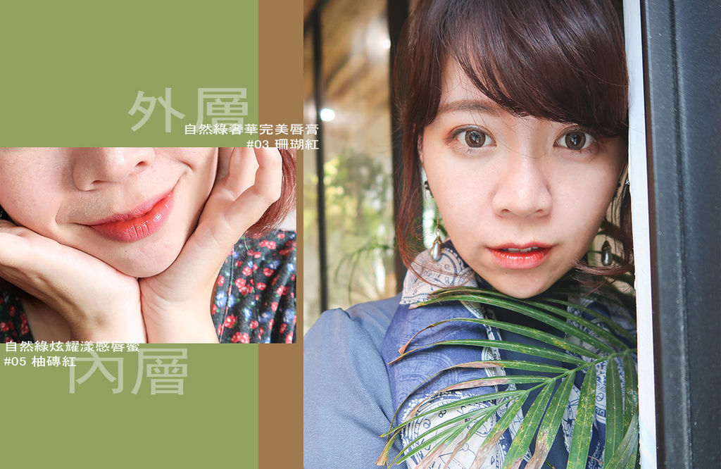 我會用#03的珊瑚紅唇膏做打底,並在內緣像咬唇妝那樣塗上些微的#05柚磚紅唇蜜