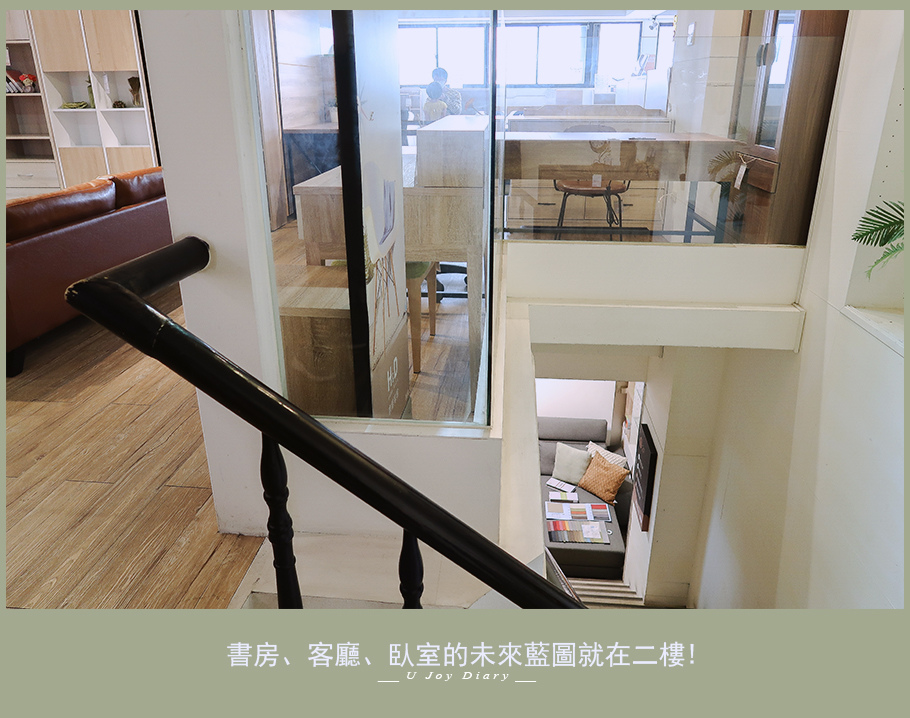 二樓空間則多為書房、臥室、客廳適用的傢俱!