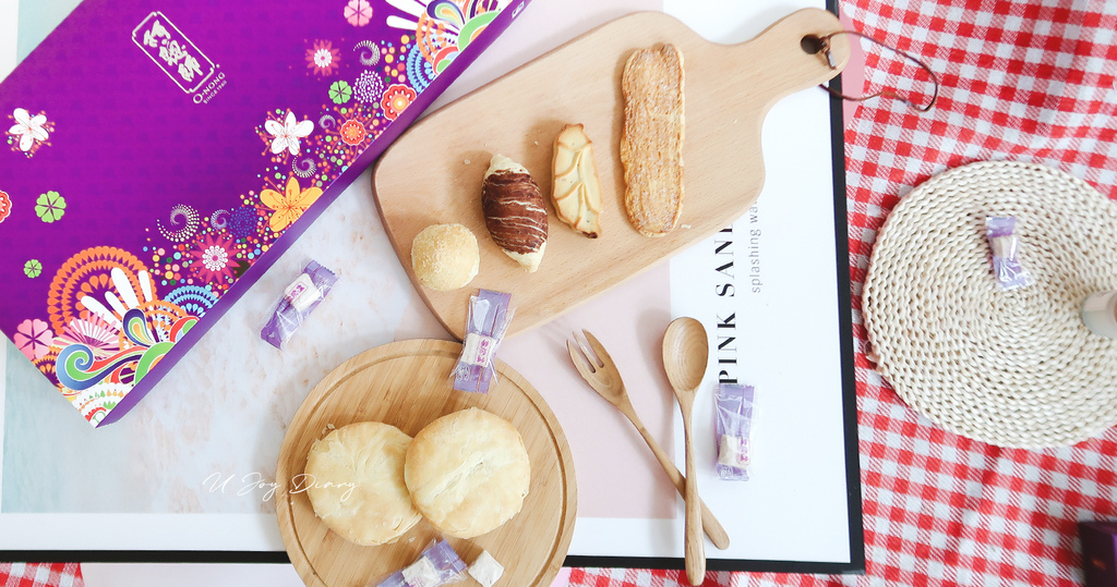 這款禮盒內包含兩款酥餅─奶油酥餅和芋頭酥餅♡ 身為台中人反而超級不吃酥餅的我,原本看到酥餅有點性致缺缺