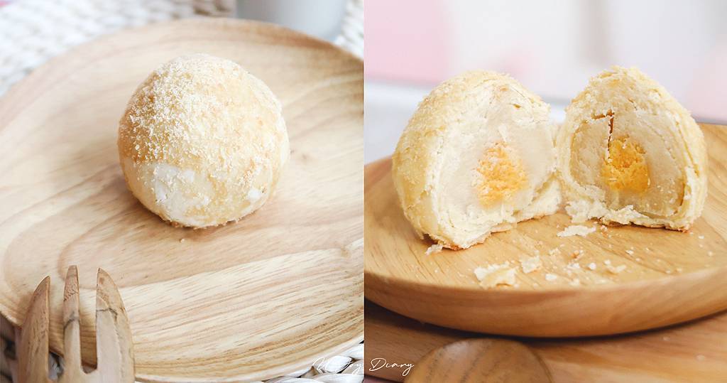 頂層撒上起司粉的晶莎寶搭配多層次鬆軟酥皮,裡面包裹著鬆軟的蛋黃內餡♡ 口感有酥、有軟,有沙沙的、也有綿綿的,非常豐富! 嚴選紅土的鹹蛋黃,經過烘烤和研磨後成為了金黃細沙,加上白鳳豆餡與特等的紐西蘭奶油,就成為細膩的晶沙餡啦~ 晶莎寶金莎的蛋黃香氣真的是特別香! 鹹甜的滋味讓我吃一整顆也不覺得膩耶