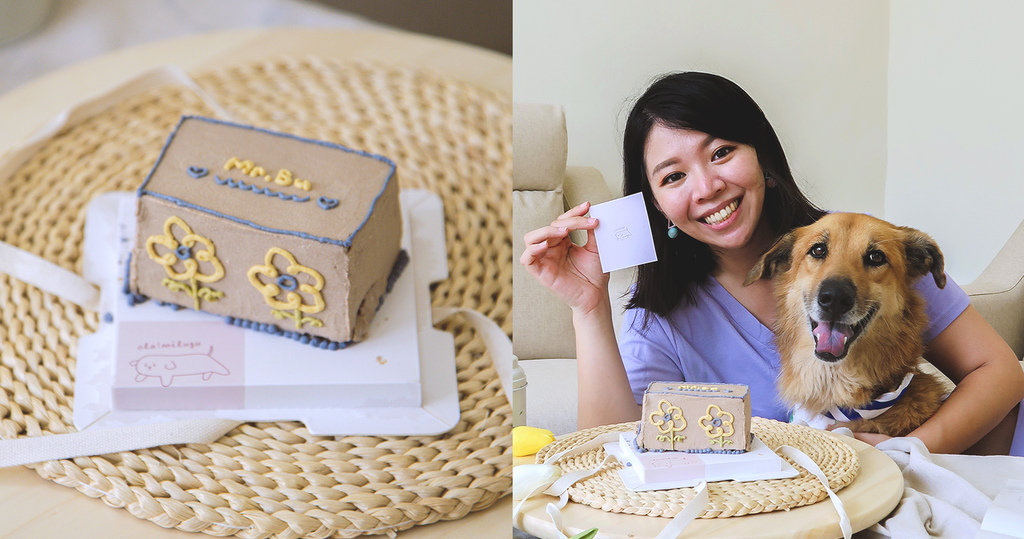 布布仙森看到蛋糕後眉開眼笑的,一直伺機猛虎出閘!興高采烈帶著ola.milugu這麼美的蛋糕回家後不拍照對不起蛋糕的吧?! 勢必得好好的拍照一波的吧?! 但大狗狗與它的小蛋糕相遇,就是不出五秒就被暴風式吸食! 直接放棄幫布布拍網美照了😂 (照片裡蛋糕殘破的部分是我數度從布布嘴裡搶救回的蛋糕劫後餘生)