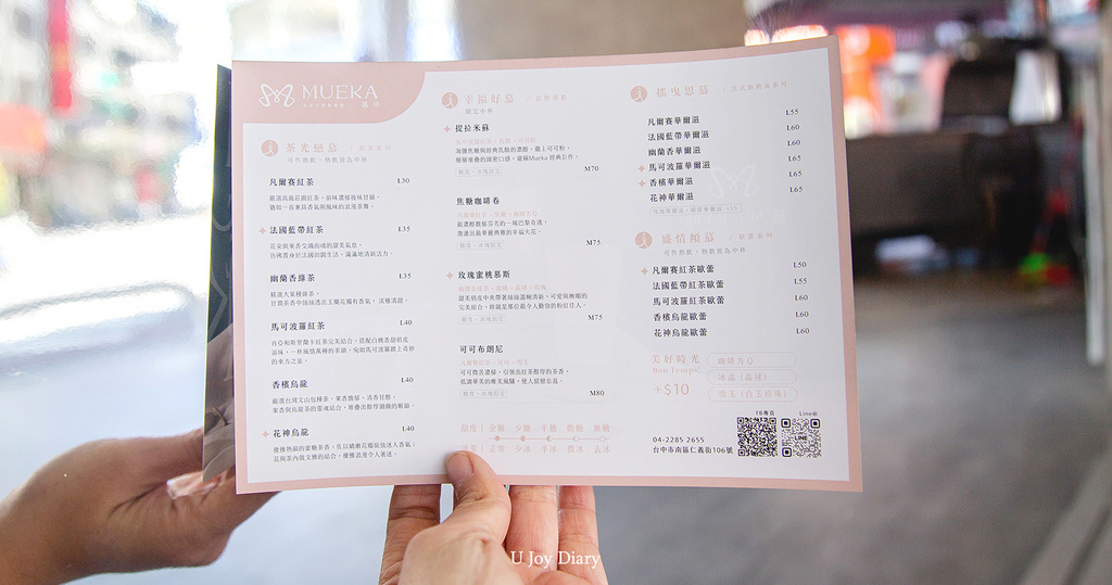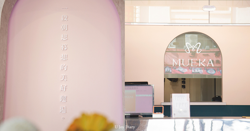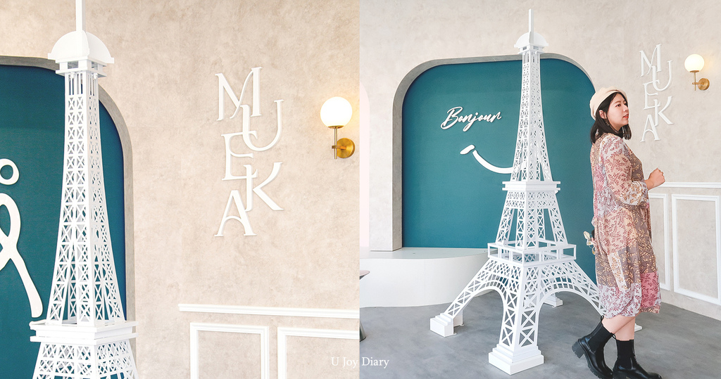 巴黎鐵塔、浪漫手寫英文、彷彿來到歐洲的拱型圓弧門窗, 慕咔 Mueka的法式風格映著粉嫩色調,企圖用柔軟的顏色和線條喚起大家的少女心♥ 慕咔 Mueka這般的顏值絕對有成為網美打卡景點的實力! 買了少女心爆棚的甜點系飲品還不和這鐵塔來上一張合照,就太可惜了!