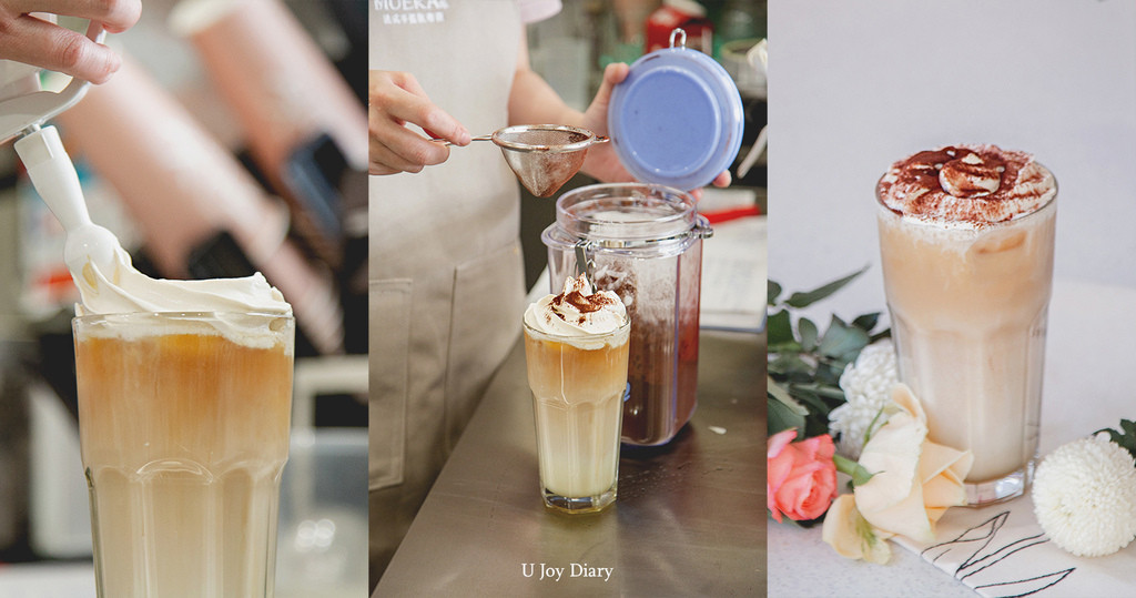 要來品嘗重頭戲招牌甜點系列啦♥ 這款就是經典法式甜點「 提拉米蘇 」的手搖飲版本呀! 慕咔提拉米蘇加入店家自製的鮮乳乳酪醬,搭配咖啡鮮奶油和可可粉,些微大人位的苦甜,再搭配海鹽焦糖和乳酪醬,是一杯細節滿滿的手搖耶。然後老話一句,看起來很像很驚悚但喝起來真的出乎預料的清爽!