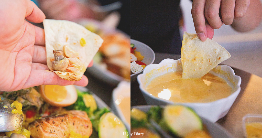 這個烤餅我們都覺得很高CP! 吃法多種變化,沾濃湯、包蔬菜、沾醬料、直接吃都很好吃! 重點是它單吃也完全不遜色,可以品嘗到一股焦香。