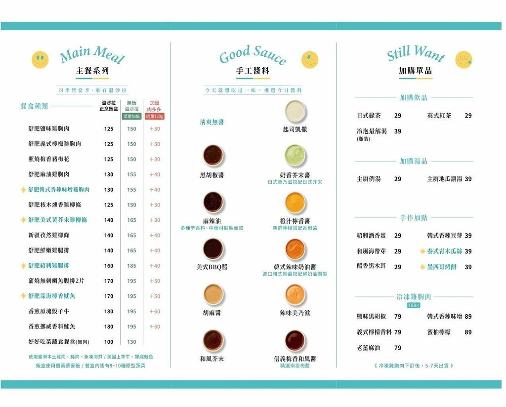 我喜歡豆雞眼溫沙拉的menu很清晰好懂,如果大家想要了解每一款餐盒的熱量,則可以拿紙本菜單了解!