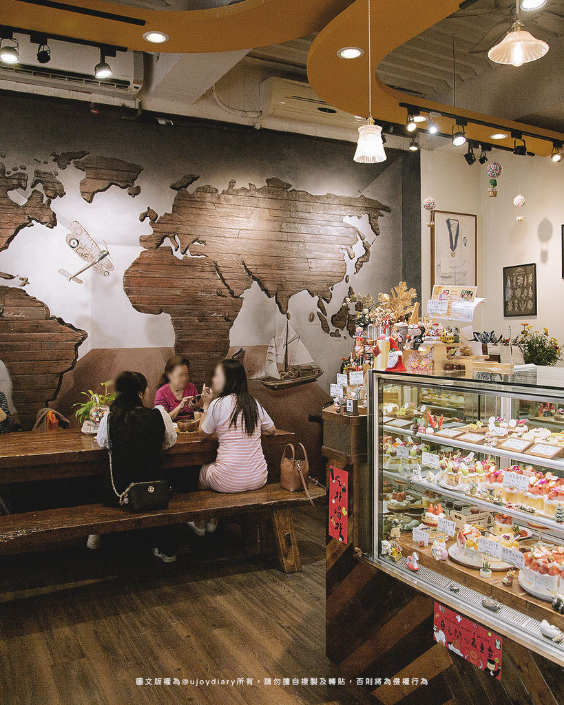 店內牆壁上有精緻的木製世界地圖,營造出一股異國旅行的氛圍,這正是我來這裡的目的! 要用FiMi後山小廚房的法式甜點帶我一秒到法國旅行♡