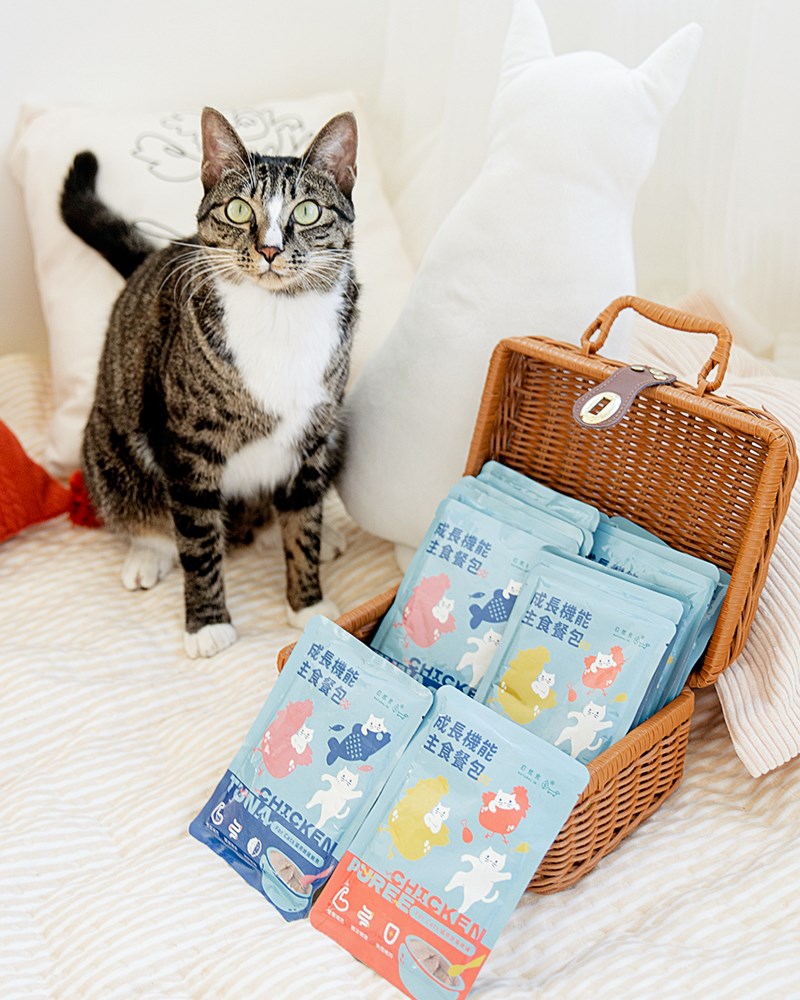 林鱻森也來品嘗專為成長期毛孩設計的成長機能貓咪主食餐包啦!