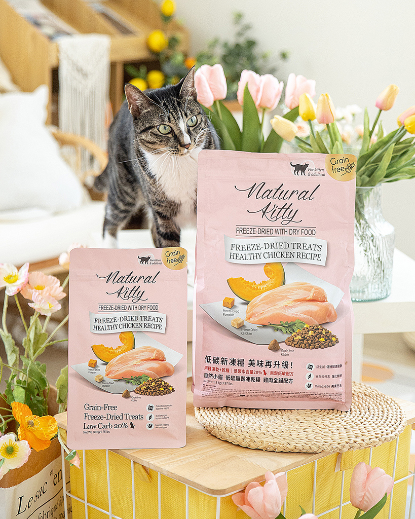 低碳無穀凍乾糧系列擁有海鮮全貓配方 & 雞肉全貓配方兩個口味,和1.8Kg & 800g 兩種份量,值得一提的是自然小貓這兩款是全貓配方,所以無論是幼貓、成貓、老貓都適合食用,大家可以為貓貓挑選適合的口味和份量
