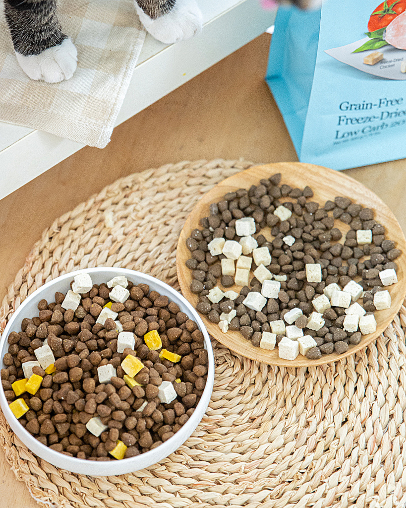 平常都要額外買凍乾給毛孩當零食,但這款自然小貓乾糧裡凍乾和乾糧直接一包滿足! 超讚! 而且這樣雙料組合我就不信這適口性無法滿足貓皇 !
