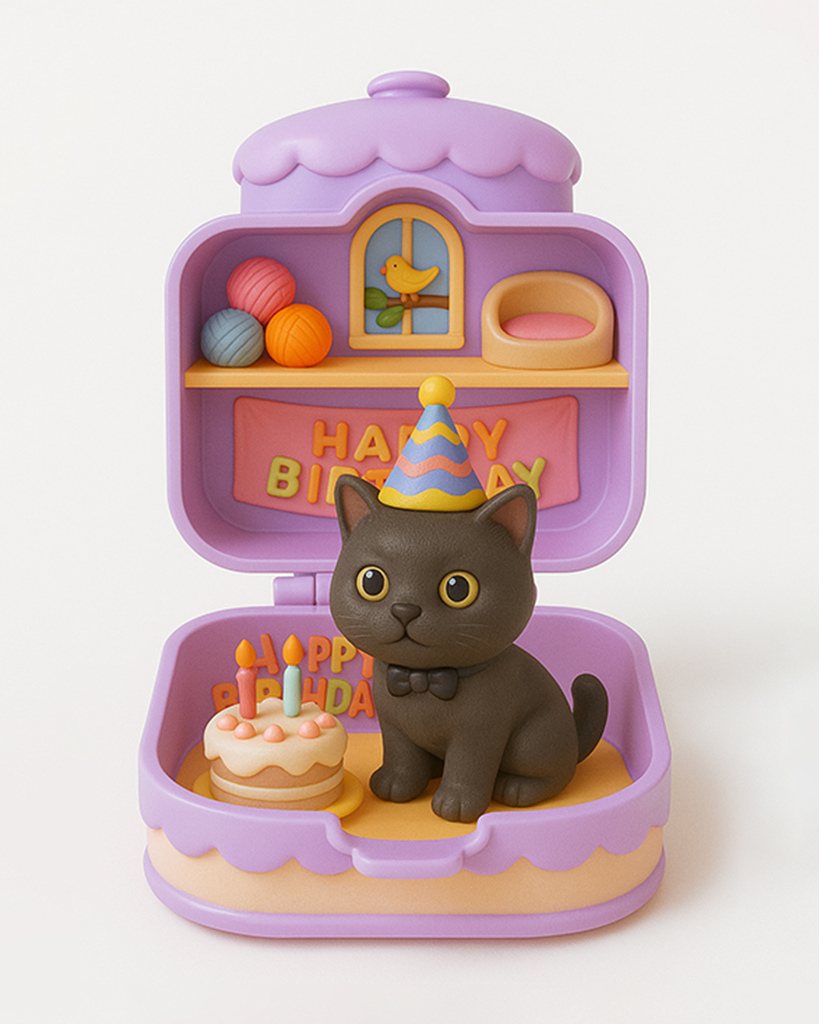 整體風格:童趣、溫馨、慶祝氛圍濃厚、3D公仔感、迷你玩具組