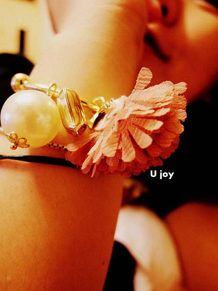 U joy這次就敗了這個!雪紡花朵珍珠愛心手鐲**