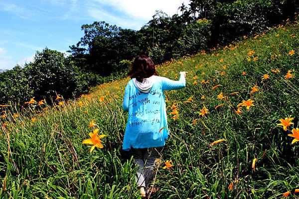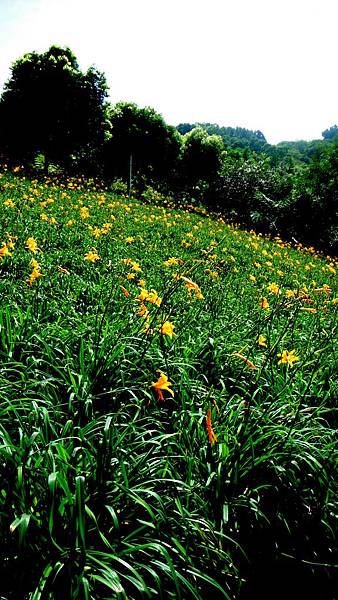 沿著蜿蜒小徑向上,只見金針花綻放得稀疏,