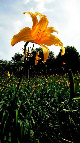 金針花們不約而同地注視著太陽,是有多渴望再把自己曬得更加金黃?