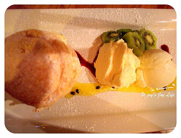 而其上還淋著百香果與草莓果醬,十分甜卻又不失該水果的原味,滋味相當好