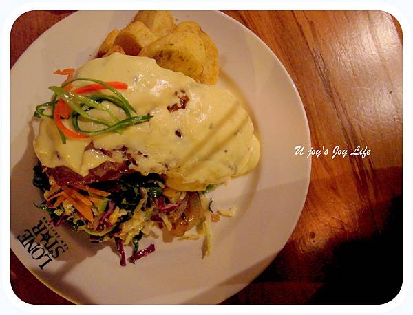 而我們的晚餐選擇了要去坐纜車又要爬的樓梯下來就一眼可見的Lone Star :)