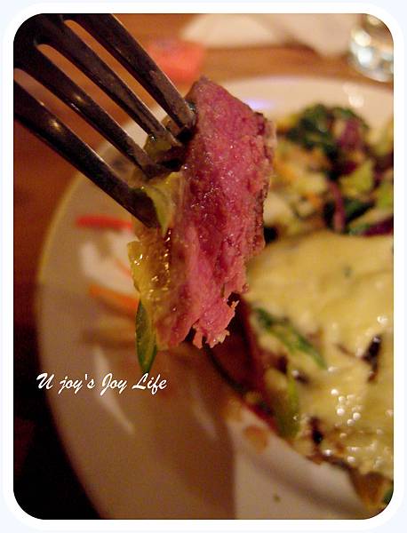 而牛肉兩側被炙烤得肉汁被緊密鎖水,
