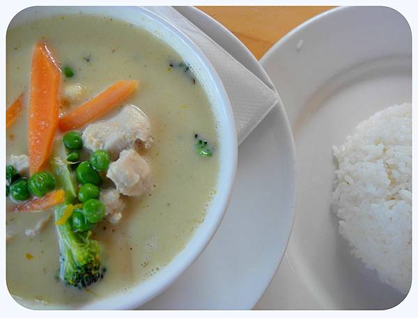 這道咖哩是以分成一碗綠咖哩和一碗白飯的形式來上桌!